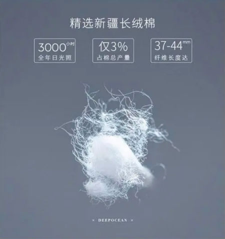 接下來,我們再來看看正在變得越來越受歡迎的長絨棉。長絨棉是一種高質量的棉花品種,因其絨毛長、柔軟度高、強度大和耐磨性好而備受歡迎。長絨棉的單纖維比普通棉花更有韌性,制成的面料不僅手感更細膩,而且強度更高、不易變形。長絨棉面料的光澤度和柔順性也遠超一般全棉面料,這使得長絨棉T恤更加貼身舒適,穿著體驗極佳。然而,長絨棉的價格也因其優質特性而通常高于普通全棉面料。